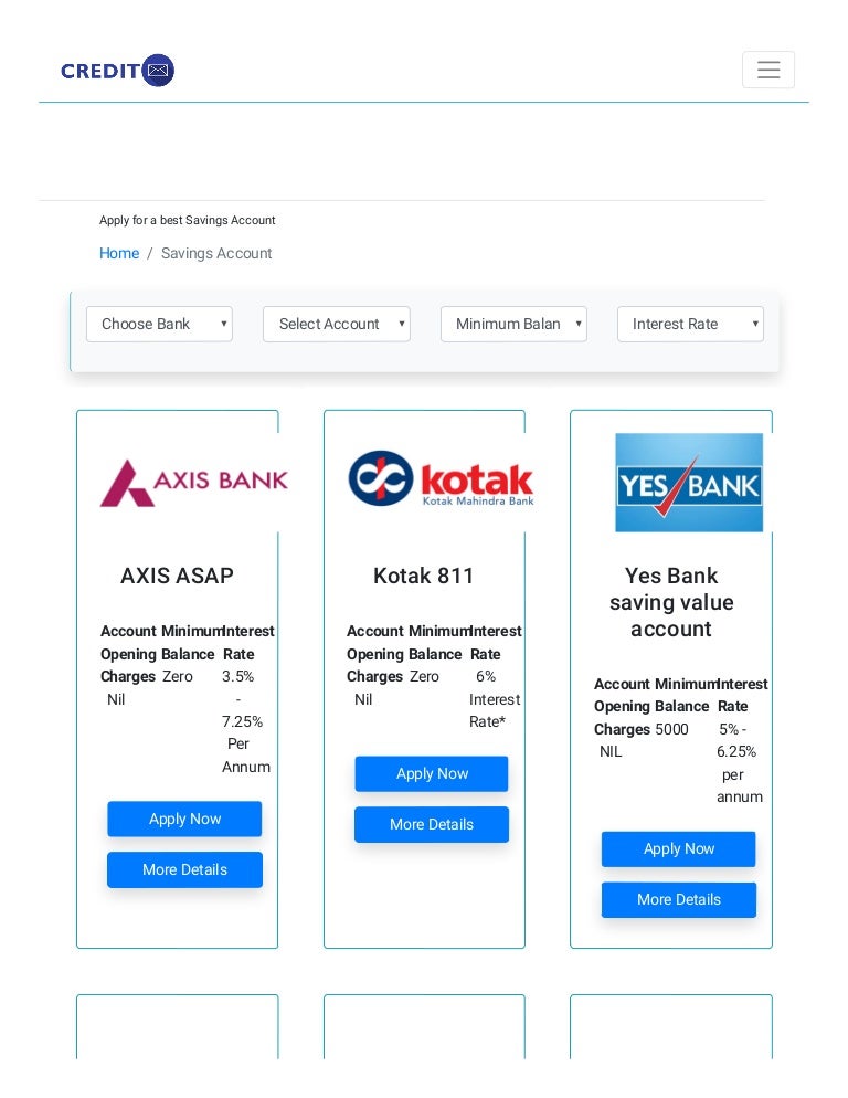 Click here for interest rate of Savings Account to view the new interest rate of Savings Account. Bank at your convenience Get access to 14,000+ Axis Bank ATMs, 4,000+ Axis Bank branches as well as internet, mobile and phone banking services. Axis Bank Savings Account Interest Rate. Axis Bank savings account comes with interest rates of 3.5% p.a. For balance below Rs. 50 lakhs, which is credited on a quarterly basis. For balances above Rs. 50 lakh you earn an interest of 4% p.a. Banks charge various fees & charges to maintain your savings accounts.